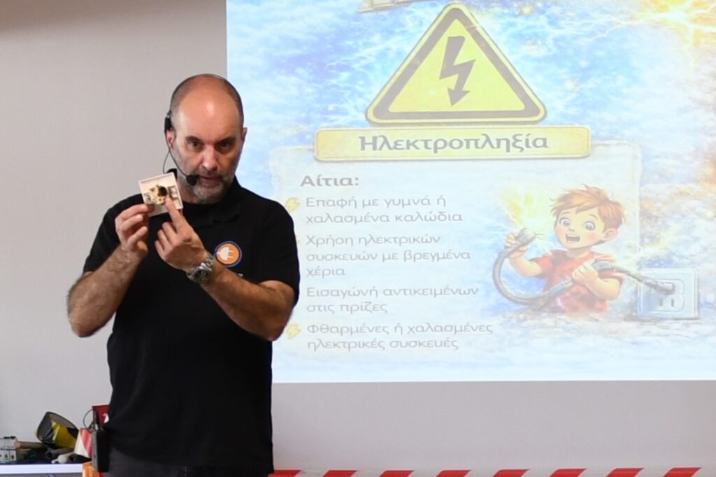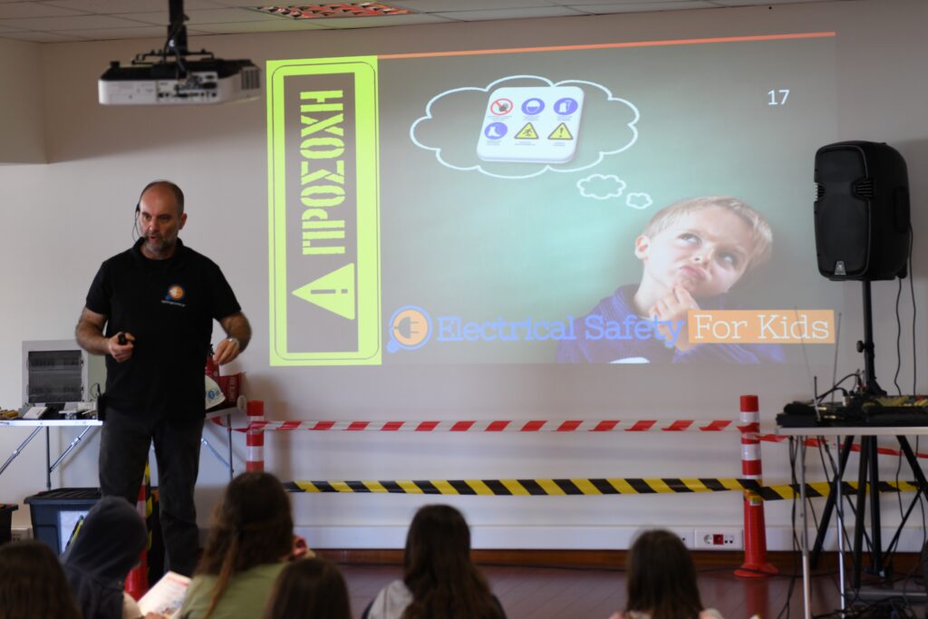Στόχος μας ήταν να φέρουμε τα παιδιά σε επαφή με βασικές αλλά κρίσιμες έννοιες ηλεκτρικής ασφάλειας, μέσα από έναν ευχάριστο, κατανοητό και συμμετοχικό τρόπο.